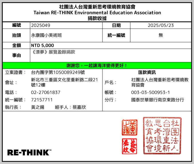 本次收益全數捐贈 RE-THINK 成為環境行動的一份子